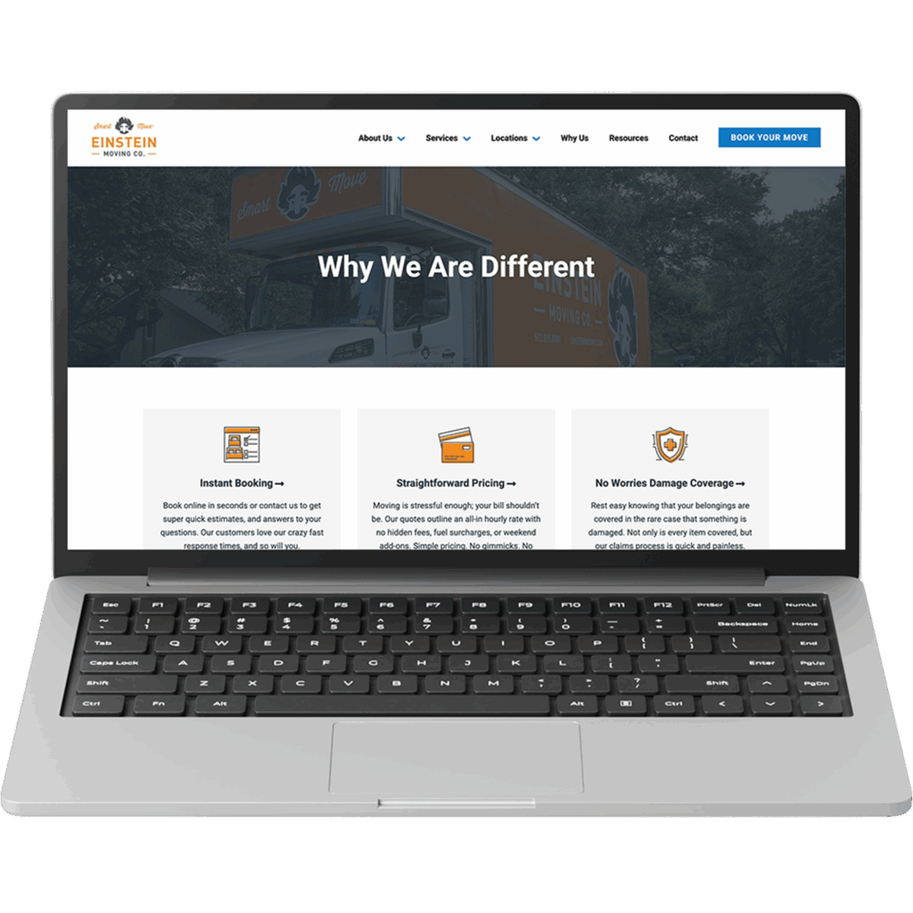Instead, we watched the other agency string our client along for months, ultimately delivering a partly finished website that wasn’t coded well and had a quote form that simply didn’t work. At that point, Einstein Moving Company made the smart decision to cut their losses and asked us to take over the entire project.