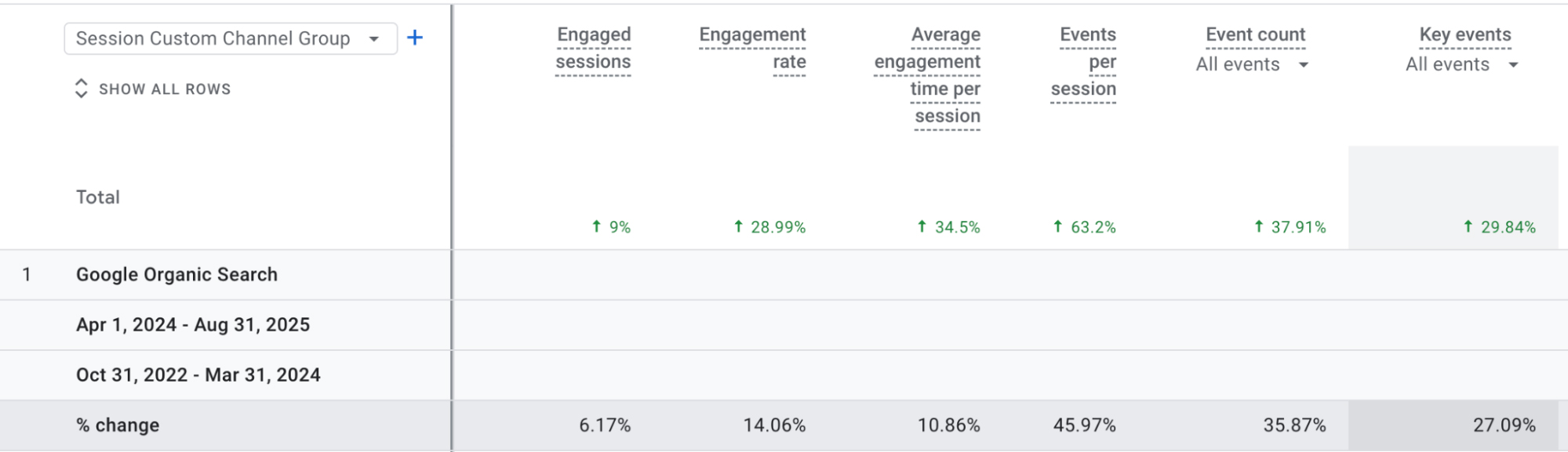 • 📈 Organic traffic increased by 35.5% (nearly 9,000 additional users)