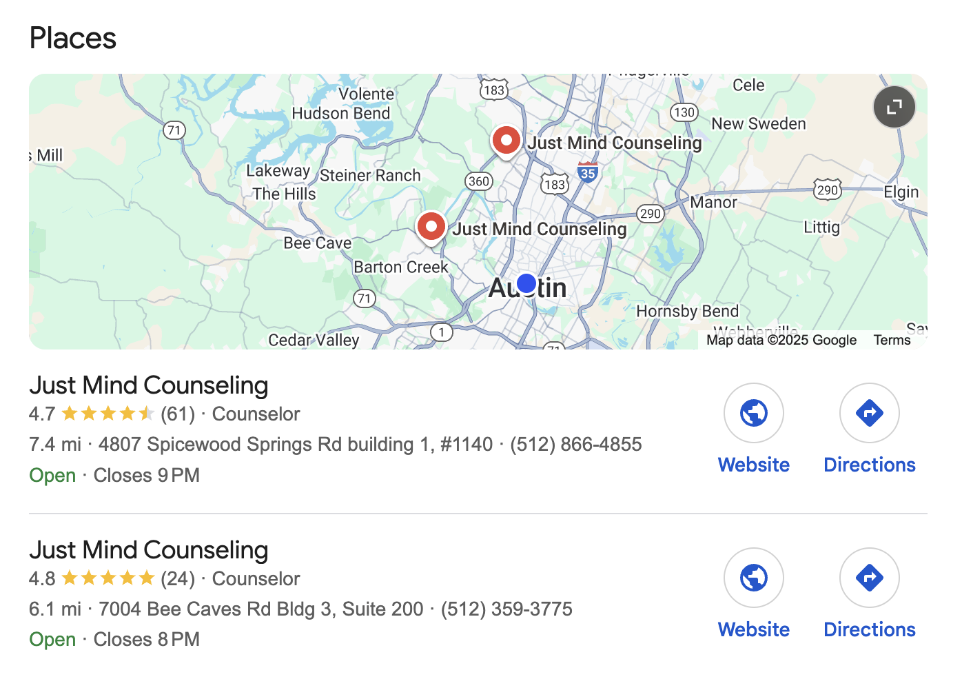 • Custom Visual Identity: The original site and the previous agency’s mockups used generic stock icons. We created custom icons to represent their different services and locations, giving them a unique brand presence that stood out from cookie-cutter competitor sites.