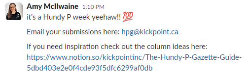 One of our goals with our internal newsletter is to help bring back some of those organic conversations and connections that we were missing. Here are some of the ways that The Hundy P Gazette contributes to our company culture: