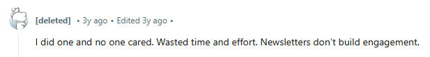 This redditor didn’t see the benefit of an internal newsletter. It probably sucked.